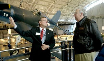 | Keywords: Retired Maj. Gen. Joseph T. Anderson (left) explains future growth plans for the National Air and Space Museum in Chantilly, Va., to Air Force Secretary Dr. James G. Roche on Dec. 21, 2004.jpg en Retired Maj Gen Joseph T Anderson left explains future growth plans for the National Air and Space Museum in Chantilly Va to Air Force Secretary Dr James G Roche on Dec 21 2004 Secretary Roche was at the musuem to view the Imax film Fighter Pilot Operation Red Flag The film follows a young American fighter pilot through his experiences at Red Flag the international training exercise for allied air forces U S Air Force photo by Master Sgt Jim Varhegyi Released under ID 041221-F-3050V-004 2004-12-21 http //archive defense gov/transformation/images/photos/photo_archive/index_2004-12 html U S Air Force photo by Master Sgt Jim Varhegyi other versions PD-USGov Generals of the United States Marine Corps Aviators from the United States Steven F Udvar-Hazy Center James Roche |