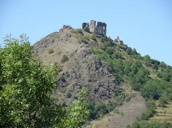 | Keywords: Retournac Château d'Artias11.JPG Retournac dép de la Haute-Loire France Auvergne Château ruiné d ™Artias perché sur un suc de 706 m d ™altitude situé le long de la Loire à quelques km en amont et donc à l ™ouest de Retournac Vue montrant le flanc méridional du suc prise depuis le hameau de Ventressac comm de Chamalières-sur-Loire sur la rive opposée de la Loire La ruine de la chapelle castrale se dresse un peu en contrebas à droite de la vaste muralle au centre self-photographed Torsade de Pointes Août 2009 Château d'Artias |