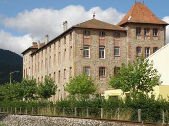Keywords: Retournac Filature2.JPG Retournac dép de la Haute-Loire France Auvergne Ancienne filature à l'avant-plan voie ferrée Le Puy ” Saint-Étienne own Photo personnelle Torsade de Pointes Août 2009 Retournac