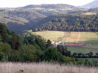 | Keywords: Retournac La Bourange1.JPG Retournac dép de la Haute-Loire France Auvergne La Bourange dans l ™est de la commune de Retournac Point de vue dirigé vers le sud depuis un lieu un peu à l ™ouest du hameau de la Para comm de Beauzac Derrière le pré et les arbres à l ™avant-plan prairies et labours de la ferme de la Bourange comm de Retournac dont on aperçoit les bâtiments logis et étables au centre de la photo Les pentes boisées derrière les champs se terminent par un plateau où se situent les Chaumettes comm de Retournac comprenant quelques maisons agricoles avec leurs prés et leurs cultures ainsi que quelques ruines La Bourange et le plateau sont enserrés par un méandre de la Loire qui coule de droite à gauche non visible sur la photo plusieurs dizaines de mètres en contrebas des arbres à l ™avant-plan Le plateau est délimité à gauche c ™est-à -dire à l ™est par une ravine où à la saison humide coule le Riougrand qui fait la frontière entre les communes de Retournac et de Beaux Les hauteurs et hameaux de Beaux sont à gauche de cette ravine Au loin contre le bord droit de la photo pentes du suc d ™Ayme own Torsade de Pointes Août 2009 Retournac Stables in France |