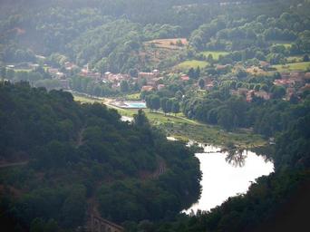 | Keywords: Retournac Retournaguet1.JPG Retournac dép de la Haute-Loire France Auvergne Le village de Retournaguet situé en face de Retournac sur la rive opposée de la Loire Vue prise au téléobjectif depuis le château ruiné d'Artias alt 706m à 3km environ en amont de Retournac nous regardons vers l'est-sud-est Le pont à arches à l'avant-plan contre le bord inférieur de la photo est le pont ferroviaire de Changue de la ligne Le Puy ” Saint-Étienne Au centre piscine municipale de Retournac Le bourg de Retournac est dissimulé par l'élévation au premier plan à gauche et n'est donc pas visible self-photographed Torsade de Pointes 2009-08 Retournac Loire River in Haute-Loire |