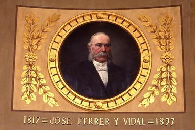 | Keywords: Retrat de Josep Ferrer i Vidal - Joan Juncosa Morlans - 8595.jpg Artwork Creator Joan Juncosa Morlans ca Retrat de bust d'un home d'edat avançada amb els cabells grisos grans patilles i bigoti amb camisa blanca de coll alt i jaqueta fosca La tela amb forma de medalló està enganxada sobre el mur i envoltada per un marc i unes fulles de llorer pintades en daurat com la inscripció amb el nom de Jose Ferrer y Vidal i les dates de naixement i mort situades a sota El retrat i les fulles estan inscrits en un rectangle between Oil on canvas cm Institution Biblioteca Museu Víctor Balaguer object history exhibition history credit line accession number 8595 place of creation Biblioteca Museu Víctor Balaguer-cooperation PD-Art PD-old-100-1923 Uploaded with UploadWizard Paintings in the Biblioteca Museu Víctor Balaguer portrait paintings Josep Ferrer i Vidal Joan Juncosa Morlans |