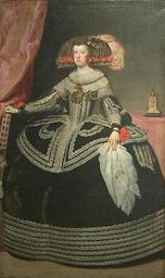 | Keywords: Retrato de la reina doña Mariana de Austria, by studio of Diego Velázquez.jpg workshop of otherdate between 1652 1653 Oil on canvas cm 209 125 Institution Louvre accession number object history credit line 000PE022921 http //picasaweb google com/EnrikeCdC/VelazquezObraCompleta 5295180142837224562 PD-old-100 picasareviewunnecessary Mariana of Austria Velázquez c 1652 Louvre Spanish paintings in the Louvre 17th-century portrait paintings in the Louvre Copies of portrait paintings Replicas of paintings |