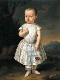 | Keywords: Retrato de una niña con cerezas.jpg c 1843 Oil on canvas Fundación Yannick y Ben Jakober Mallorca Fundación Yannick y Ben Jakober other versions PD-old-100 DEFAULTSORT 1843c; unknown girl Juan Mestre Bosch Fundación Yannick y Ben Jakober Portraits of unknown children 1840s oil on canvas paintings in Spain 1843 oil on canvas paintings 1843 portrait paintings 19th-century oil portraits of girls at full length 19th-century portrait paintings in Spain 1840s paintings from Spain Female shoes in portrait paintings Females with white dresses in art Portrait paintings of standing girls Portrait paintings of very young girls Paintings of people with cherries Pantalettes Portraits with fruits Portrait paintings with natural background White clothing in art female Waist sashes in art 1840s dresses |