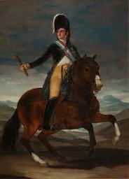 | Keywords: Retrato ecuestre de Fernando VII.jpg Retrato ecuestre del rey Fernando VII de España 1784-1833 que fue hijo del rey Carlos IV de España 1808 Oil on canvas cm 285 205 Institution Real Academia de Bellas Artes de San Fernando accession number 679 http //goya unizar es/InfoGoya/Obra/Catalogo_/Pintura_/459p html PD-old-100 other versions Retrato ecuestre de Fernando VII by Francisco de Goya Real Academia de Bellas Artes de San Fernando | ||||
