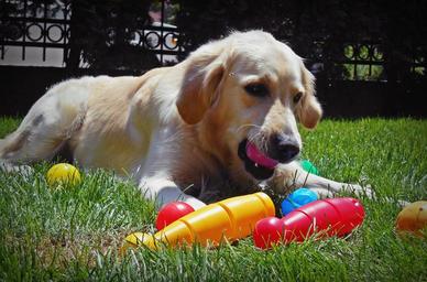 Keywords: retriever golden play pet dog doggy grass adorable breed happy friend fur furry happiness