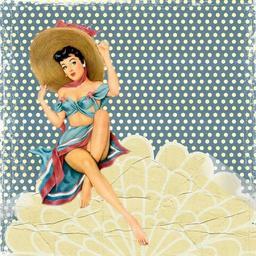Keywords: retro collage girl pin up sexy hat fashion lady art vintage background page classic design decoupage scrapbook vogue romantic nostalgia ornament decor decoration elegant style card greeting template swirl blue colorful collection