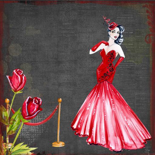 Keywords: retro vintage movie star roses starlet watercolor design evening dress famous glamour fifties 1950s old style antique decorative classic grunge sign luxury girl happy lady model person romantic elegant fashion decoupage art scrapbook collage cinema pinup square black texture