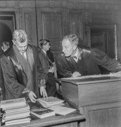 | Keywords: rettsak litteratur forfattere oslo norge blackandwhite monochrome black and white Behandling av ankesak i Høyesterett 9. mai 1958 i forbindelse med utgivelsen av Sangen om den røde rubin. Fotograf: Fjørtoft, Bjørn, Billedbladet NÅ, Riksarkivet (RA/PA-0797/U/Ue/L0064/0012) Behandling av ankesak i Høyesterett 9. mai 1958 i forbindelse med utgivelsen av Sangen om den røde rubin. Fotograf: Fjørtoft, Bjørn, Billedbladet NÅ, Riksarkivet (RA/PA-0797/U/Ue/L0064/0012) | ||||