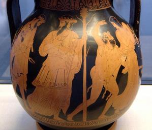 | Keywords: Return Hephaistos Staatliche Antikensammlungen 2361.jpg Kleophon-Maler Kleophon Painter Rückführung des Hephaist zum Olymp mit Dionysos und seinem Thiasos Seite A von einer attischen rotfigurigen Pelike 440-430 v Chr Return of Hephaestus on Olymp with Dionysos and his thiasos Side A of an Attic red-figure pelike 440 “430 BC Retour d'Héphaïstos dans l'Olympe accompagné de Dionysos et son thiase Face A d'une péliké attique à figures rouges 440-430 av J -C H 46 cm Museum Staatliche Antikensammlungen Room 3 Beazley ARV2 1145 36 object history credit line accession number Inv 2361 User Bibi Saint-Pol own work 2007-02-10 other versions <gallery>Image Pelike_Kleophon_painter_440_BC_01 jpg</gallery> Dionysos with Sileni in ancient Greek pottery Hephaestus in ancient Greek pottery Maenads in ancient Greek pottery Dancing Sileni in ancient Greek pottery Thyrsos in ancient Greek pottery Kantharoi in art Pelikai Kleophon Painter Red-figure pottery in the Staatliche Antikensammlungen Staatliche Antikensammlungen - Room 3 440s BC pottery in Germany Berlin 430s BC pottery in Germany Berlin |