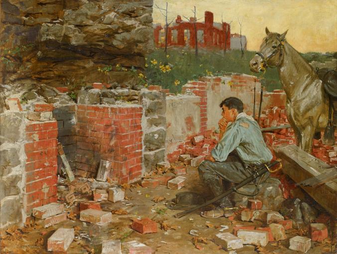 | Keywords: Return Home by William Gilbert Gaul.jpg  artwork Q18572630 This painting depicts the homecoming that awaited many Confederate veterans The loss of their homes and families were the source of much ill feeling towards the North after the war institution Birmingham Museum of Art http //www artsbma org/pieces/return-home/1971-1399/ Gilbert Gaul; William Gilbert Gaul United States 1855 - 1919 oil on canvas 1907-1909 33 x 43 in 83 8 x 109 2 cm Inscription signed LL Gilbert Gaul Credit LineGift of John Meyer Accession number 1971 38 other versions PD-old Uploaded with UploadWizard American paintings in the Birmingham Museum of Art 1909 paintings in the United States William Gilbert Gaul |