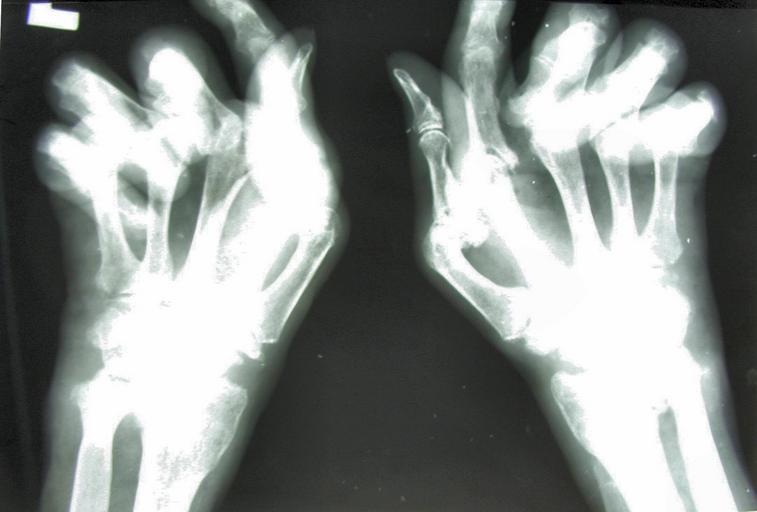 | Keywords: Reumatoidalne zapalenie stawow 01.jpg Reumatoidalne zapalenie stawów - obraz RTG dłoni - duże zmiany destrukcyjne stawów przykurcze deformacje skostnienia Rheumatoid arthritis - X-ray image of the hand - large changes in destructive arthritis contractures deformity ossification Arthritis mutilans pl wikipedia Masur CommonsHelper 2005-06-27 Jojo wikipedia pl Jojo original upload log page pl wikipedia Rzs_01 jpg 2005-06-27 10 32 Jojo 2162×1463× 312874 bytes <nowiki>Reumatoidalne zapalenie stawów - obraz RTG dłoni - duże zmiany destrukcyjne stawów przykurcze deformacje skostnienia Jestem autorem tego zdjęcia i nadaje mu status PD PD </nowiki> Rheumatoid arthritis Hands Ossification |