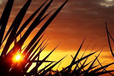 Keywords: reunion island sunset evening inflamed sun ocean sea sky side leaves holiday silhouette summer nature yellow orange light