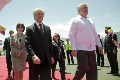 Keywords: Quito, Ecuador. 21 de septiembre de 2015. Llegada del Presidente de Uruguay Tabaré Vázquez, a Quito para la reunión presidencial con Colombia, Ecuador y Venezuela. Carlos Pozo / Cancillería del Ecuador uruguay ecuador colombia venezuela tabarévázquez relacionesexteriores políticainternacional rodolfoninnovoa