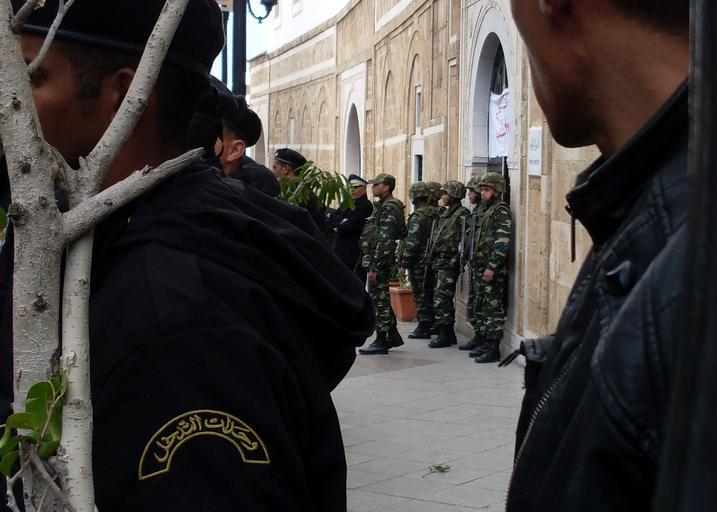 | Keywords: Révolution des Jasmins 18.jpg fr Militaires et agents de la Brigade de l'Ordre Publique protégeant l'entrée principale du premier ministère à la Kasbah lors des manifestations contre le gouvernement de transition lors de la révolution des Jasmins own Rais67 2011-01-22 Cc-zero Demonstrations and protests relating to the Tunisian Revolution Military people of Tunisia Dar El Bey | ||||