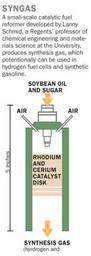 | Keywords: RFV reactor diagram.jpg en The reactive flash volatilization of nonvolatile fluids such as soybean oil triglycerides or sugar glucose occurs in an 18 mm diameter quartz reactor tube about 5 inches long Fluid fuels are applied directly to a Rh-Ce/alumina catalyst foam support by an automotive fuel injector Air is supplied co-currently to maintain a fuel-rich environment Complete reaction occurs in milliseconds to equilibrium selectivity to synthesis gas Original work M Daily 2008-10-26 Check categories 2008 November 23 en wikipedia Reactive_flash_volatilization Chemical processes Soybean oil |