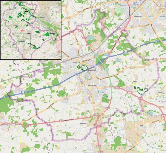 Keywords: Rheda-Wiedenbrück - nature reserves.png Nature reserves in Rheda-Wiedenbrück - overview map<br/>Number and borders of nature reserves are subject to frequent change In order to facilitate reproduction of this map from openstreetmap the following data is stored here <br/> export boundaries north 51 905; west 8 19 south 51 78; east 8 41 mapnik svg scale 1 70 000<br/> nature reserve boundary stroke weight 3 5; <br/>nature reserve stroke color R 5 G 102 B 36; <br/>district border stroke weight 20 Naturschutzgebiete in Rheda-Wiedenbrück - à bersichtskarte Rheda-Wiedenbrück - vue d'ensemble Own based on http //www openstreetmap org/ Open Street Map 2011-04-13 Hagar66 Maps of Rheda-Wiedenbrück Nature reserves in Kreis Gütersloh Cc-zero |