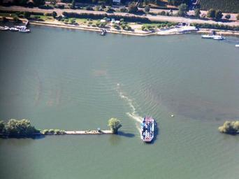| Keywords: RheinfähreMittelheimWinkeler Bucht.JPG de Vogelperspektive auf die Mittelheimer Rheinfähre Michael Sie verlässt gerade die Winkeler Bucht bei Rhein-km 519 durch die Öffnung eines Strömungsleitwerks in Richtung Ingelheim Die Fahrrinne in der Bucht ist durch unter Wasser erkennbare Untiefen eingeengt und mit gelben Tonnen gekennzeichnet own Brühl 2010-07-19 Aerial photographs of Rheingau-Taunus-Kreis Mittelheim Rhine in Rheingau Ferries across Rhine in Germany Economy of Rheingau-Taunus-Kreis Transport in Rheingau-Taunus-Kreis |