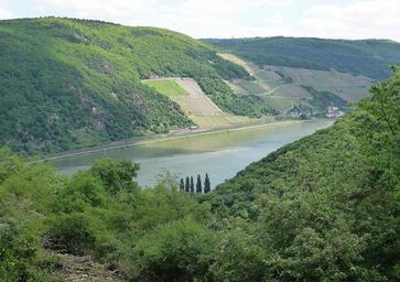 Keywords: rhine bank river wine terraces germany river landscape waters shipping