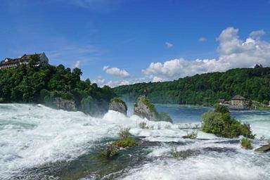 Keywords: rhine falls high water schaffhausen neuhausen am rheinfall water mass rock run closed schloessli woerth rhine switzerland