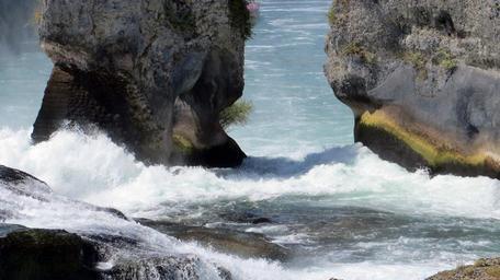 Keywords: rhine falls schaffhausen water spray enormous switzerland germany rhine river tourism destination murmur roaring water mass rock observation deck