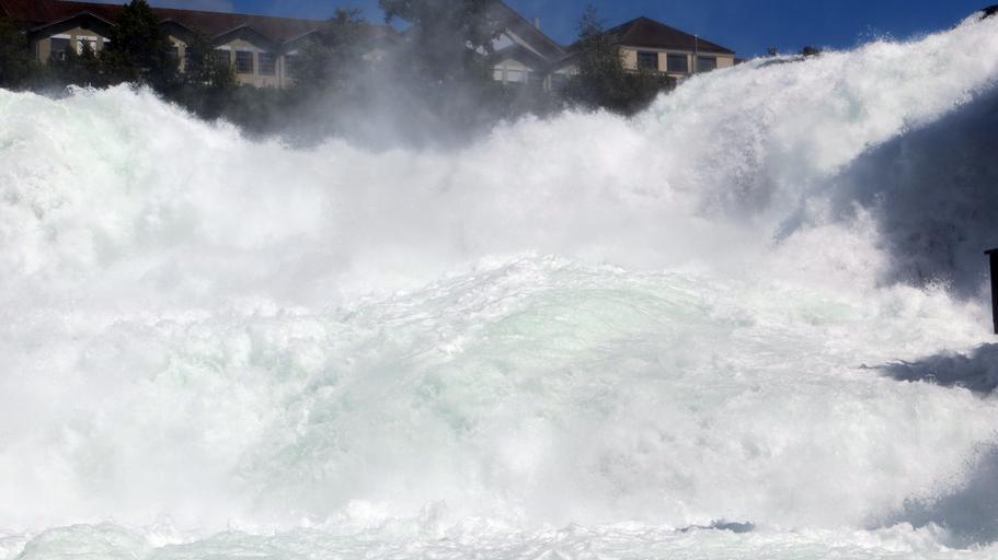 Keywords: rhine falls schaffhausen water spray enormous switzerland germany rhine river tourism destination murmur roaring water mass rock observation deck