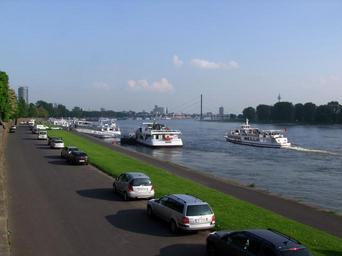 Keywords: rhine river shipping city düsseldorf germany nice weather summer sky blue