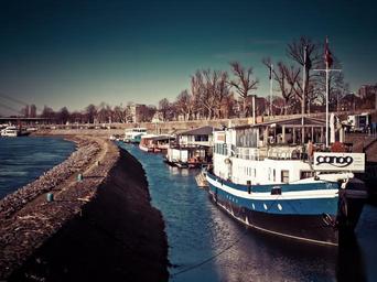 Keywords: rhine river water nature boats houseboat mood düsseldorf rhine river abendstimmung