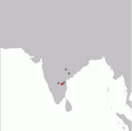 Keywords: Rhinoptilus bitorquatus range.png en Range of Jerdon's Courser historic records in grey 2006-05-27 own Shyamal Charadriiformes distribution maps Rhinoptilus bitorquatus Bird distribution maps of India