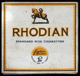 Keywords: Rhodian cigarettes pack, front.JPG Very old packaging of a product that is not produced and not sold any more own 2014-04-13 09 48 27 Alf van Beem CC-Zero Trademarked Rhodian cigarettes Cigarette packs