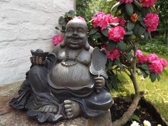 Keywords: rhododendron blossom bloom buddha pink spring relax yoga garden green thick belly