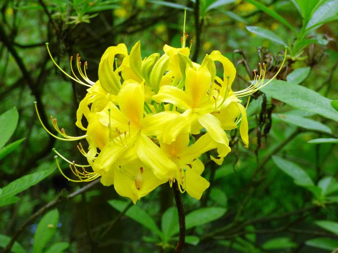 Keywords: rhododendron flower azalea azaleas yellow flowers plants nature blooms bloom spring plant green garden vegetable tanned macro