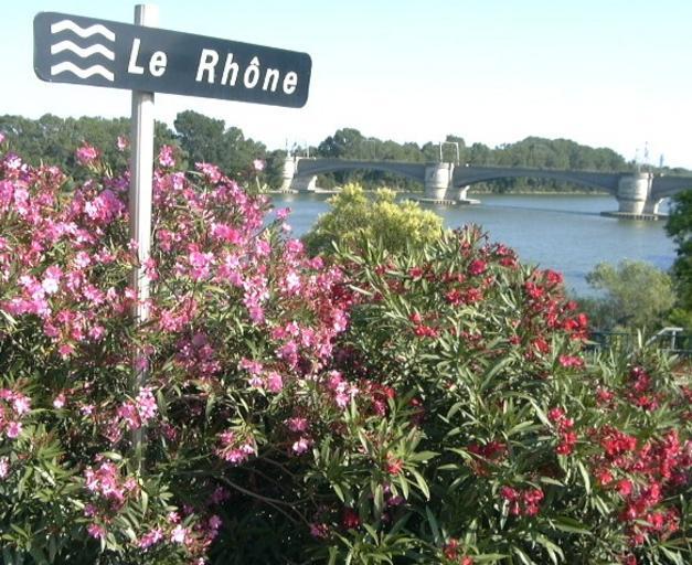 | Keywords: Rhône-sign-flowers-water (medium).jpg Chameleon Location West end of a bridge Le Pont de Beaucaire spanning the River Rhône between Beaucaire and Tarascon View Sign reading ˜Le Rhône ™ some beautiful flowers part of the river and the railway bridge a little further downstream Authorship Photograph taken by User Chamaeleon for Wikipedia Railway bridge between Beaucaire and Tarascon Rhône River in Beaucaire-Tarascon River name signs in Gard Taken with Panasonic Lumix DMC-LC20 | ||||