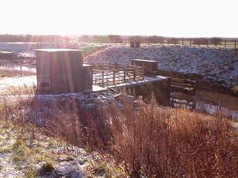 | Keywords: Ribble Link 04c216.jpg The rising sector gate on the Ribble Link at SD 479 295 in Lea Marsh This is just south of the Lea Gate Hotel Blackpool Road about 5 km west of Preston Lancashire England and about 500 metres north of where the Ribble Link / Savick Brook enters the River Ribble At low tide the brook below this point and the Ribble itself are unnavigable because there is too little draught available At this time the sector gate is raised as in this photo to maintain a navigable depth of water between here and the sea lock about 600 metres upstream On the incoming tide once the water is level either side of the gate it is lowered to allow boats to pass Photo taken 2004 December 26 12 43 Roger W Haworth Ribble Link Water transport Lancashire Images by Roger W Haworth |