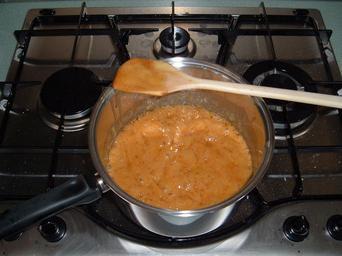 Keywords: Rice bubble cake end of boiling.JPG Making Rice Bubble cake How the mixture looks at the end of four minutes of boiling 2005-12-20 own assumed Evil Monkey Cooking