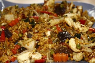 Keywords: rice fry up lunch eat carrots rice ladle food delicious meal substantial edible pan court nutrition