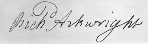 Keywords: Richard Arkwright signature.png Richard Arkwright https //archive org/details/doctorjohnsonand00broauoft Internet Archive - Doctor Johnson and Mrs Thrale p 167 Richard Arkwright 1774 PD-old-100 PD-US Richard Arkwright