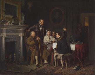 | Keywords: Richard Caton Woodville - Old '76 and Young '48 - Walters 372370 - A T Front.jpg A young officer recounts his experiences in the Mexican War of 1848 to a veteran of the American Revolution The persons represented are members of the artist's family the old man is his great-uncle Richard Caton; his mother and father appear as the middle-aged couple his elder sister as the young lady and his brothers as the officers Discernible on the walls of the Baltimore parlor are a portrait of George Washington by Rembrandt Peale and an engraving of John Trumbull's Signing of the Declaration of Independence ca 1776 1849 Oil on canvas cm 53 3 68 2 ; Framed cm 67 31 84 14 12 07 accession number 37 2370 33726 American Art-Union Sale New York 1852 William H Webb New York 1852 by purchase George William Abell Baltimore 1842-1894 mode of acquisition unknown Mrs Francis Theodore Homer Jennie M Abell Baltimore mode and date of acquisition unknown Mrs Ferdinand C Lee Jane Palfrey Homer Baltimore mode and date of acquisition unknown Mr and Mrs George Jenkins Baltimore November 12 1954 mode of acquisition unknown Walters Art Museum 1954 by purchase Museum purchase 1954 The West as America National Museum of American Art Washington 1991-1992 At Home with Art Painting in American Interiors 1784-1919 Katonah Museum of Art Katonah 1995 The American Artist as Painter and Draftsman The Walters Art Museum Baltimore 2001 American Stories The Metropolitan Museum of Art New York; Los Angeles County Museum of Art Los Angeles 2009-2010 place of origin Florence Italy PD-old-auto 1927 Richard Caton Woodville Media contributed by the Walters Art Museum needs category review Paintings in the Walters Art Museum American Art-Union |