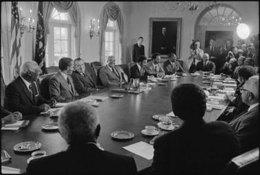 | Keywords: Richard M. Nixon meeting with a group of Presidents of black colleges and universities. - NARA - 194557.tif Scope and content Pictured Richard M Nixon Herman Branson Lincoln University James Cheek Howard University Granville sawyer Texas Southern Allix James Virginia Union U Milton Curry Jr Bishop College Lloyd Elam Meharry Medical College walter Washingotn Alcorn A M University Lewis Dowdy North Carolina A T Frank Carlucci Under Sec of HEW Caspar Weinberger Sec of HEW Stanley Scott Special Assistant G Leon Netterville Southern University James Lawson Fisk University Lucius Pitts Paine College Miles Mark Fisher IV Executive Sec of the National Association for Equality in higher education Peter Holmes Director of the Office of Civil Rights Dept of HEW Smauel Myers Bowie State College Luna Mishoe Delaware State College Roy Hudson Hampton Institute General notes 194557 Local identifier NLRN-WHPO-E1864-08 General Services Administration National Archives and Records Service Office of Presidential Libraries Office of Presidential Papers 01/20/1969 - ca 12/1974 Most Recent <br /> President 1969-1974 Nixon White House Photo Office 1969 - 1974 Most Recent NARA-Author Knudsen Robert L Robert LeRoy 1929-1989 Photographer 8451337 <br /> Richard Nixon Library NLRN 18001 Yorba Linda Boulevard Yorba Linda CA 92886 1973-11-29 Record group Collection RN-WHPO White House Photo Office Collection Nixon Administration 01/20/1969 - 08/09/1974 Record group ARC 1179 Nixon White House Photographs compiled 01/20/1969 - 08/09/1974 documenting the period 08/08/1968 - 08/09/1974 Series ARC 194277 File unit File unit ARC Variant control numbers NAIL Control Number NLNP-WHPO-MPF-E1864 08 yes Other versions NARA-cooperation PD-USGov Richard Nixon |