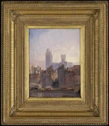 | Keywords: Richard Parkes Bonington - Rouen Cathedral, Sunrise - 2012.44 - Minneapolis Institute of Arts.jpg sketchy image of skyline with buildings in browns and greys; lightening slightly cloudy sky with bright clouds at bottom grey sky in ULC 11 5/16 x 8 15/16 in 28 73 x 22 7 cm 15 11/16 x 18 7/16 x 2 1/4 in 39 81 x 46 83 x 5 72 cm outer frame 2012 44 https //api artsmia org/images/113539/5895/large jpg Q1700481 Oil on millboard Rouen Cathedral Sunrise https //collections artsmia org/index php page detail id 113539 Q20891800 |