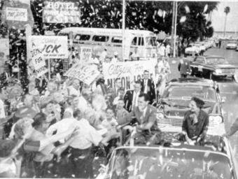 | Keywords: florida state library and archives of florida statelibraryandarchivesofflorida presidential campaign of 1960 presidentialcampaignof1960 campaigning richard m. nixon richardmnixon pat nixon patnixon st. petersburg stpetersburg pinellas county pinellascounty reference collection referencecollection parades republican national party republicannationalparty blackandwhite monochrome black and white Local call number: RC20727 Title: Richard and Pat Nixon during a campaign parade: St. Petersburg, Florida Date: October 18, 1960 Physical descrip: 1 photoprint - b&w - 8 x 10 in. Series Title: Reference Collection Repository: State Library and Archives of Florida, 500 S. Bronough St., Tallahassee, FL 32399-0250 USA. Contact: 850.245.6700. Archives@dos.state.fl.us Persistent URL: www.floridamemory.com/items/show/41853 Local call number: RC20727 Title: Richard and Pat Nixon during a campaign parade: St. Petersburg, Florida Date: October 18, 1960 Physical descrip: 1 photoprint - b&w - 8 x 10 in. Series Title: Reference Collection Repository: State Library and Archives of Florida, 500 S. Bronough St., Tallahassee, FL 32399-0250 USA. Contact: 850.245.6700. Archives@dos.state.fl.us Persistent URL: www.floridamemory.com/items/show/41853 |
