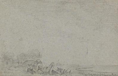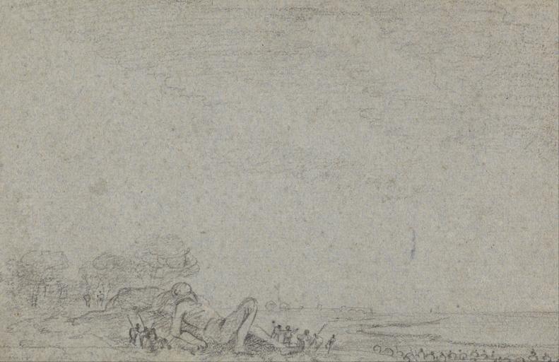 | Keywords: Richard Wilson - Gulliver Bound by the Lilliputians - Google Art Project.jpg Inscribed in graphite recto lower center Gulliver in Lilliput Inscription _Signed_and_Dated Not signed not dated Not on View Graphite on medium rough blue laid paper mounted on moderately thick moderately textured cream laid paper Gulliver Lilliputians people water trees spears historical subject special url_id mQGKQWDtyGkAzw PD-old-100-1923 1782 Richard Wilson painter Google Art Project works by Richard Wilson Gulliver |