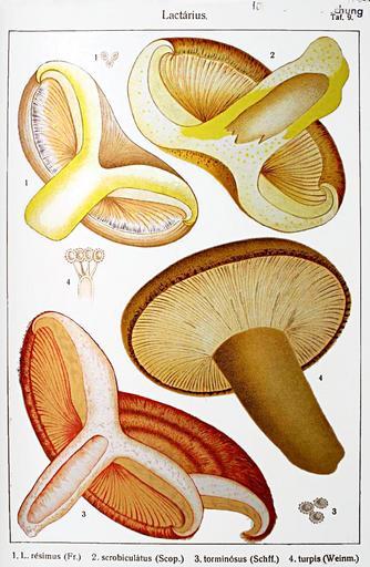 | Keywords: Ricken-Blätterpilze-Tafel-9.jpg en Adalbert Ricken Die Blätterpilze Agaricaceae Deutschlands und der angrenzenden Länder besonders Oesterreichs und der Schweiz The Agarics Agaricaceae Of Germany and the neighboring countries especially Austria and Switzerland neighboring countries http //caliban mpipz mpg de/ricken/tafeln_screen/IMG_2653 jpg www biolib de Adalbert Ricken 1915 PD-Old Lactarius torminosus Lactarius citriolens Lactarius turpis Lactarius scrobiculatus Adalbert Ricken | ||||
