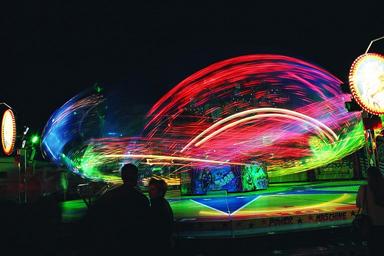 Keywords: ride carousel motion blur colorful red green folk festival customs regional typical fixed tradition festival site night photograph long exposure