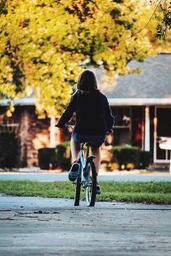 Keywords: ride cycle bike bicycle kid childhood neighbor neighbourhood home autumn hoodie