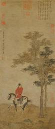 Keywords: RidingOutInSpringtime.jpg A ride in spring chinese Chunjiao youqi tu by Zhao Yong son of Zhao Mengfu see Image OldTreeAndHorses jpg China Yuan dynasty 14th century Ink and paint on silk height 88 cm width 51 1 cm National Palace Museum Taibei Inv no guhua 000224 The writing on the left discussing the artistic merits of the painting is by Dong Qishang For only the painting see Image RidingOutInSpringtimeCropped jpg 元 趙雍 春郊遊騎 Zhao Yong / of the reproduction National Palace Museum Taibei Institution National Palace Museum Dschingis Khan und seine Erben exhibition catalogue München 2005 p 317 century 14 PD-Art Chao Yung Paintings in the National Palace Museum Paintings of the Yuan Dynasty Zhao Yong