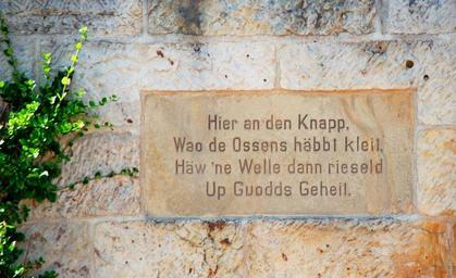 | Keywords: Riesenbeck Ossenlock 03.jpg en Ossenlock monument in Hörstel-Riesenbeck Kreis Steinfurt North Rhine-Westphalia Germany de Das Ossenlock in Hörstel-Riesenbeck Kreis Steinfurt Nordrhein-Westfalen Deutschland Das Denkmal wurde 1929 vom Heimatverein Riesenbeck zur Erinnerung an die Reinhildisquelle erbaut In die Mauer der Denkmalanlage sind auch zwei Steine mit niederdeutschen Versen von Johannes Oechtering eingelassen own J -H Janßen 2011-06 FoP-Germany Ossenlock Riesenbeck Low Saxon inscriptions in Germany Horstel-Riesenbeck 2011 in Hörstel 201106 Horstel-Riesenbeck June 2011 in Germany 201106 Horstel-Riesenbeck Bilder von J -H Janßen Cc-zero |