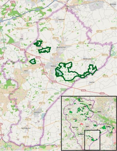 | Keywords: Rietberg - nature reserves.png Nature reserves in Rietberg - overview map<br/>Number and borders of nature reserves are subject to frequent change In order to facilitate reproduction of this map from openstreetmap the following data is stored here <br/> export boundaries north 51 882; west 8 33 south 51 713; east 8 543 mapnik svg scale 1 100 000<br/> nature reserve boundary stroke weight 3 5; <br/>nature reserve stroke color R 5 G 102 B 36; <br/>district border stroke weight 20 Naturschutzgebiete in Rietberg - Ã bersichtskarte Rietberg - vue d'ensemble Own based on http //www openstreetmap org/ Open Street Map 2011-04-14 Hagar66 Maps of Rietberg Nature reserves in Rietberg Cc-zero |