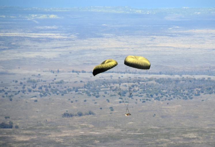 | Keywords: RIMPAC 2012 120731-N-RI884-381.jpg en Cargo simulating humanitarian assistance supplies drops from a C17 Globemaster III as the 535th Airlift Squadron participates in an exercise over Pohakuloa Hawaii Twenty-two nations more than 40 ships and submarines more than 200 aircraft and 25 000 personnel are participating in the biennial RIMPAC exercise from June 29 to Aug 3 in and around the Hawaiian Islands The world's largest international maritime exercise RIMPAC provides a unique training opportunity that helps participants foster and sustain the cooperative relationships that are critical to ensuring the safety of sea lanes and security on the world's oceans RIMPAC 2012 is the 23rd exercise in the series that began in 1971 U S Navy photo by Mass Communication Specialist 2nd Class Daniel Barker/Released 2012-07-31 Petty Officer 2nd Class NPASEWest Hawaii https //www dvidshub net/image/637475 120731-N-RI884-381 2012-08-01 23 05 HI US PD-USGov-Military-Navy Boeing C-17 Globemaster III Images from DoD uploaded by Fæ |