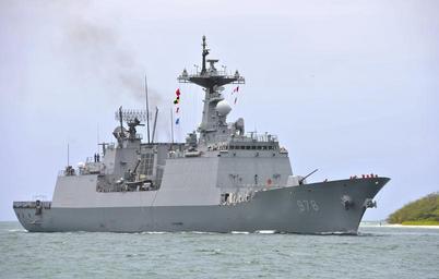| Keywords: RIMPAC 2014 140520-N-WF272-015.jpg en The South Korean destroyer Wang Geon DDH 978 arrives at Joint Base Pearl Harbor-Hickam Hawaii May 20 2014 in preparation for the Rim of the Pacific RIMPAC 2014 exercise RIMPAC is a U S Pacific Command-hosted biennial multinational maritime exercise designed to foster and sustain international cooperation on the security on the world's oceans U S Navy photo by Mass Communication Specialist 3rd Class Diana Quinlan/Released 2014-05-20 Petty Officer 3rd Class Diana Quinlan https //www dvidshub net/image/1358496 140520-N-WF272-015 2014-05-22 08 02 JOINT BASE PEARL HARBOR-HICKAM HI US PD-USGov-Military-Navy Foreign warships at Pearl Harbor RIMPAC 2014 Images from DoD uploaded by Fæ |